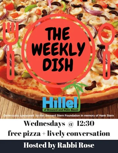 Come join us for our weekly Lunch and Learn event for free pizza and fresh conversation EVERY Wednesday at 12:30, hosted by Rabbi Rose and guest-starring a fascinating group of community rabbis.