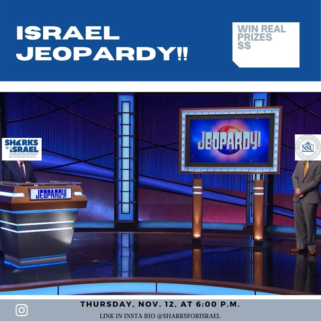 Join Sharks for Israel on November 12 at 6:00 pm as we host a Jeopardy game night on all things Israel! Bring your competitive side because there will be PRIZES and you’re not going to want to miss out!!